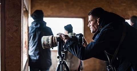 Louis heeft een telelens op zijn spiegelreflexcamera bevestigd. “Toch een investering van 2.000 euro”, zegt hij. “Maar vergeleken met wat sommige andere spotters bijhebben, is mijn materiaal speelgoed. Je hebt lenzen die wel 6.000 euro kosten. Zo ver ga ik niet. Er is veel verschil in vogelspotters. Sommigen hebben peperdure lenzen, voor anderen is een verrekijker van een paar honderd euro voldoende.”