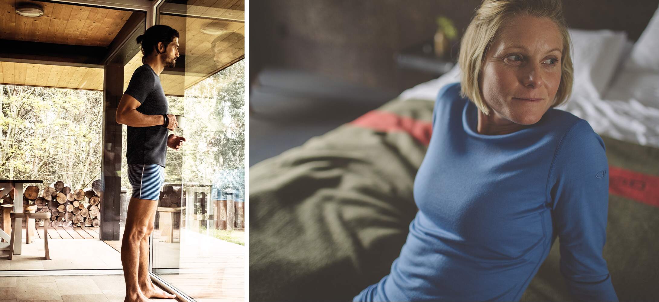 Ondergoed in natuurlijke merinowol is heerlijk zacht en werkt antibacterieel. Wil je ondergoed dat vooral vochtregulerend werkt? Dan kan je voor een synthetische stof gaan. Absoluut te mijden: katoen. Dat absorbeert net vocht. Of je in je frissere woonkamer voor lange of korte mouwen en broekspijpen gaat, is volledig jouw keuze!